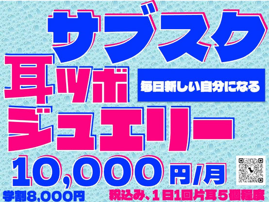 ダイエット効果のある耳ツボに貼る鍼をはり、色々なジュエリーを貼付して耳をオシャレにしてみましょう。学割も設定しています。